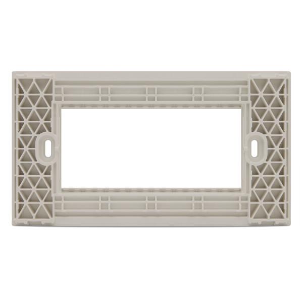 Supporto modulare da incasso a 4 posti progettato per l’installazione di frutti elettrici della serie Zen. Consente un fissaggio solido e preciso dei moduli all’interno delle scatole da incasso, garantendo allineamento corretto, stabilità meccanica e facilità di montaggio.