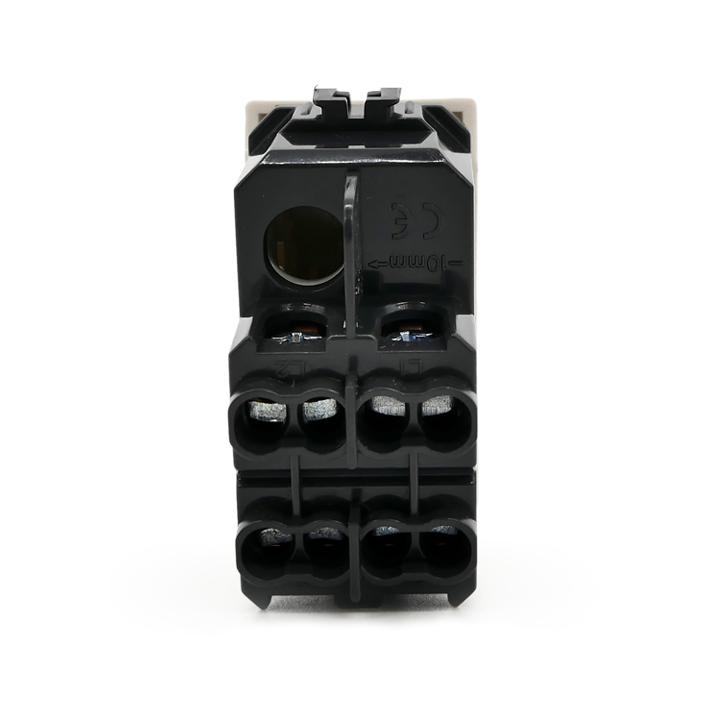 L'interruttore bipolare è composto da due poli. La sua funzione è quella di interrompere tutte e due le linee della corrente: la fase ed il neutro. Sul retro ha infatti quattro morsetti, due di entrata e due di uscita, a differenza del semplice interruttore unipolare che possiede solo due morsetti.