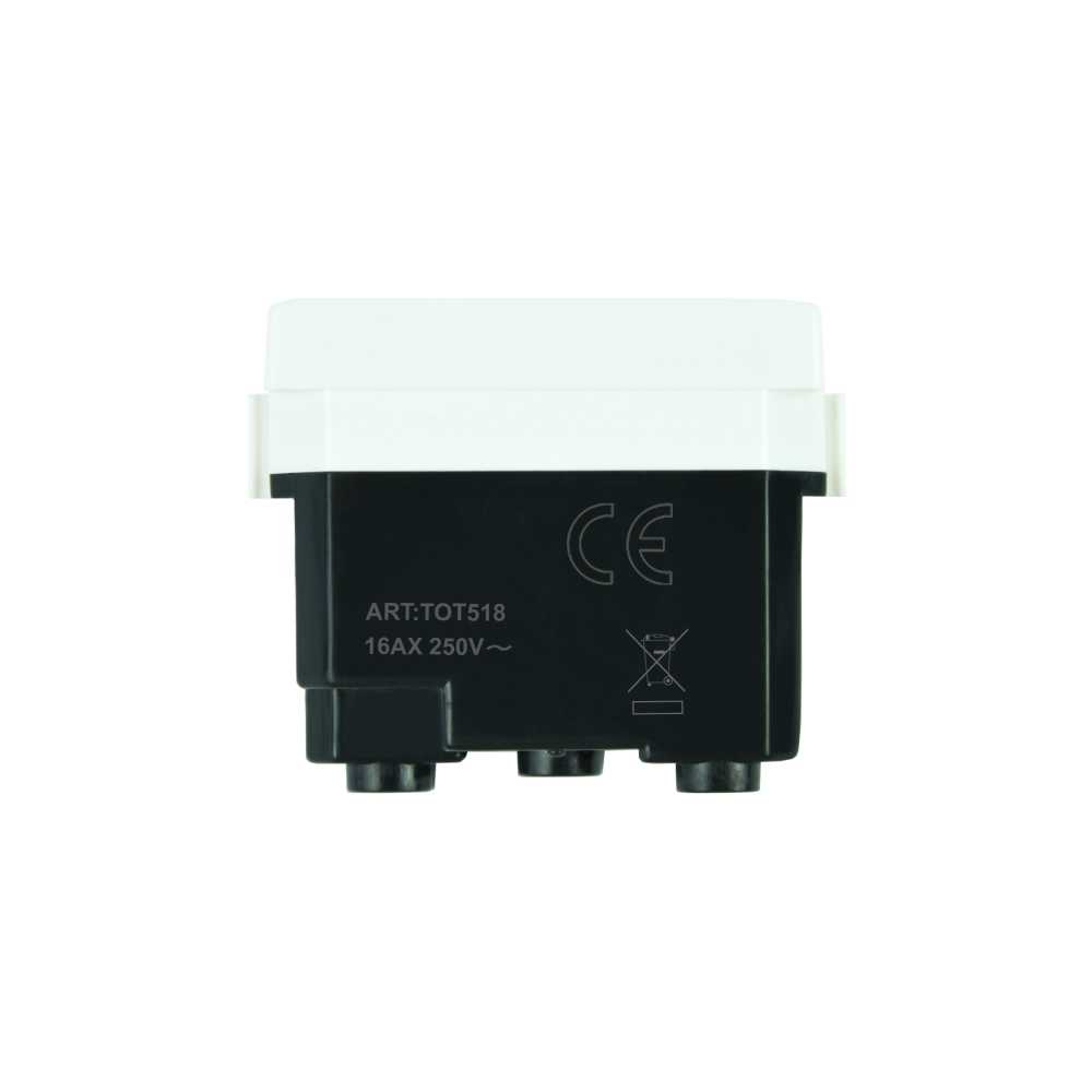 Presa bivalente o bipasso standard Italia 2P+T. E' un mix tra due prese, consente di inserire sia spine da 10A (spina piccola) che spine da 16A (spina grande). E' dotata di alveoli schermati dove collegare la maggior parte di utilizzatori come forno, televisione, multiprese, ecc.