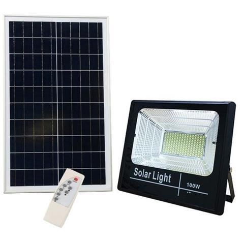Kit faro LED dimmerabile 100W 6500K IP67 con pannello solare e telecomando