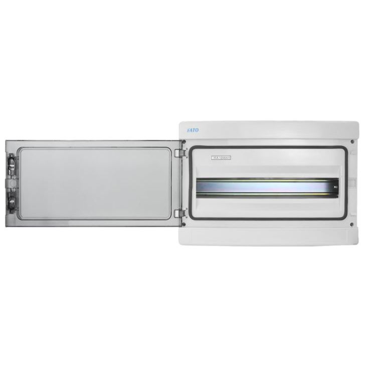 Centralino elettrico da parete con capacità 18 moduli DIN, ideale per installazioni civili, industriali e per impianti fotovoltaici. Il design robusto con porta fumé trasparente consente un rapido controllo dei dispositivi interni mantenendoli protetti da polvere e spruzzi.